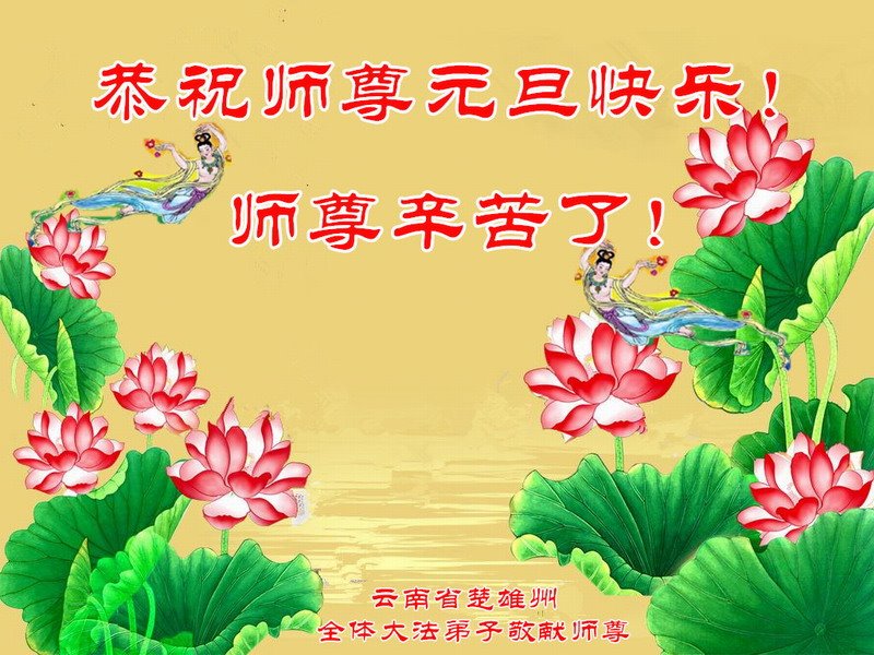 云南大法弟子恭祝慈悲伟大的师尊新年快乐!