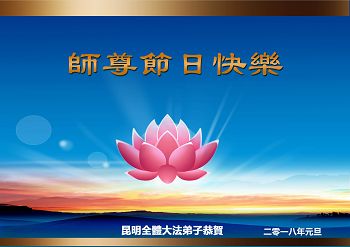 云南昆明市全体大法弟子恭祝慈悲伟大的师尊新年快乐!