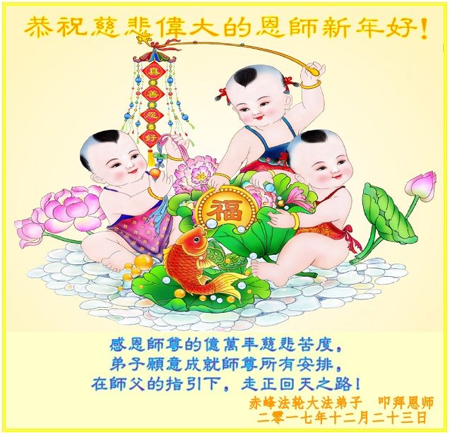 为报答恩师,弟子一定不辜负师尊的期望,走正走好师尊安排的路,完成师父所赋予的使命! 合十! 内蒙古赤峰法轮大法弟子全体家族成员及亲友恭祝师尊新年快乐!