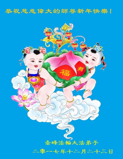 感恩师尊的亿万年慈悲苦度, 弟子愿意遵从师尊所有安排, 在师父的指引下,走正回天之路! 赤峰法轮大法弟子 叩拜恩师 二零一七年十二月二十三日 内蒙古赤峰市全体大法弟子叩拜恩师新年快乐!感恩师尊慈悲救度!