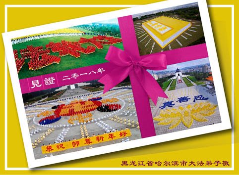 二零一八年元旦将至,弟子叩拜师尊!在新的一年里,我们一定要修好自己,向内找,精進实修,多救人,做好三件事,让师尊少一份操劳,多一份欣慰!圆满随师尊回家!谢谢师尊的慈悲救度! 黑龙江省哈尔滨市大法弟子恭祝师尊新年快乐!