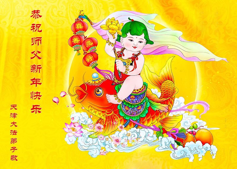 天津大法弟子恭祝慈悲伟大的师尊新年快乐!