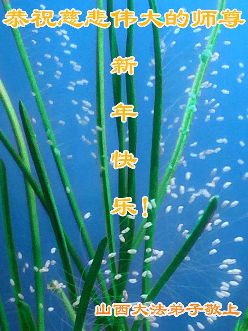 我们感恩慈悲伟大的师尊引领我们走过了风风雨雨的十八年正法之路!师尊无量的智慧、慈悲的胸怀给予每一个生命得救的机会,天地万物、宇宙众生无不感恩师尊的慈悲救度!新的一年即将翻开,我们珍惜师尊为众生得救、为成就大法弟子兑现誓约而延续来的分分秒秒。我们唯有听师父的话,踏踏实实的做好三件事,救度众生,不辜负师尊对我们的无限期望! 山西省太原大法弟子一学法小组敬祝师尊新年快乐!