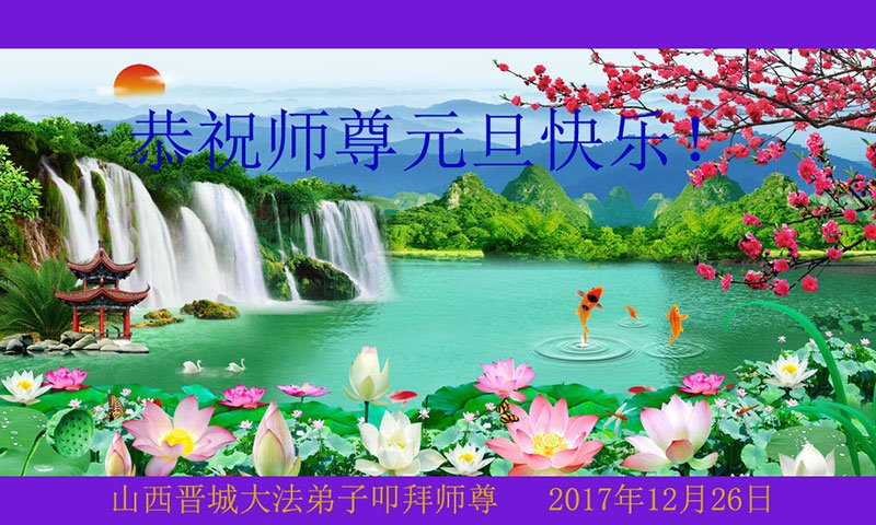 日月如梭,岁月如箭,一年一度的新年佳节即将到来,值此佳节,弟子问候师尊,师父您辛苦了!弟子感到肩负的责任重大,弟子一定抓紧实修,加倍偿还弟子生生世世欠下的业力,勇猛精進,圆满随师还! 山西大同一学法小组大法弟子恭祝师尊元旦快乐!