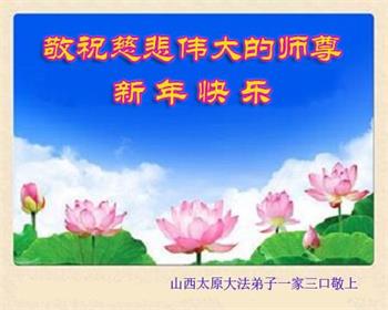 我们要抓紧分分秒秒,修好自己,完成好救人的使命。叩谢师尊慈悲苦度! 山西太原大法弟子一家三口敬祝师尊新年快乐!
