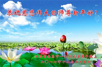 大法弟子姐姐和狱中的妹妹向伟大的师尊问候新年好,恭祝师尊新年快乐! 大法弟子在任何环境下,只有救人的份,别无他想。弟子一定兑现自己的誓约,完成神圣的使命。再次祝师尊新年快乐!感谢师尊的苦度之恩。 江西省南昌市新建区大法弟子俩姐妹恭祝 2017年12月23日 |