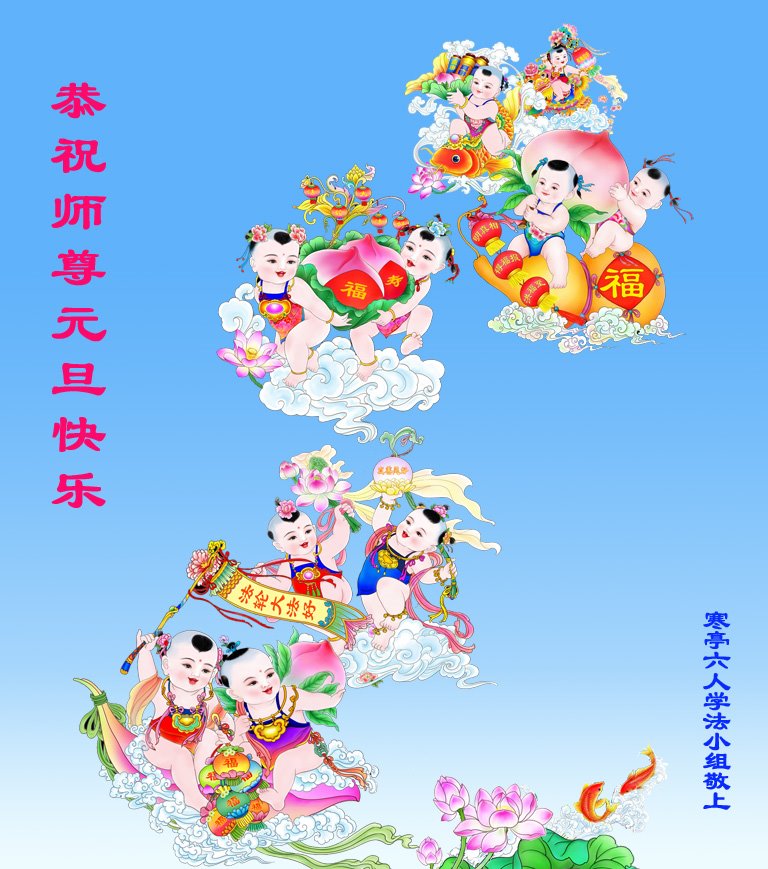 我们谨遵师命,学好法,修好自己,多救人,不辱使命,请师父放心! 山东潍坊临朐县一老年资料点同修恭祝师尊新年快乐!