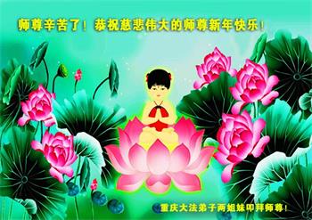 重庆市江北区大法弟子姐妹俩恭祝伟大慈悲的师尊新年好!