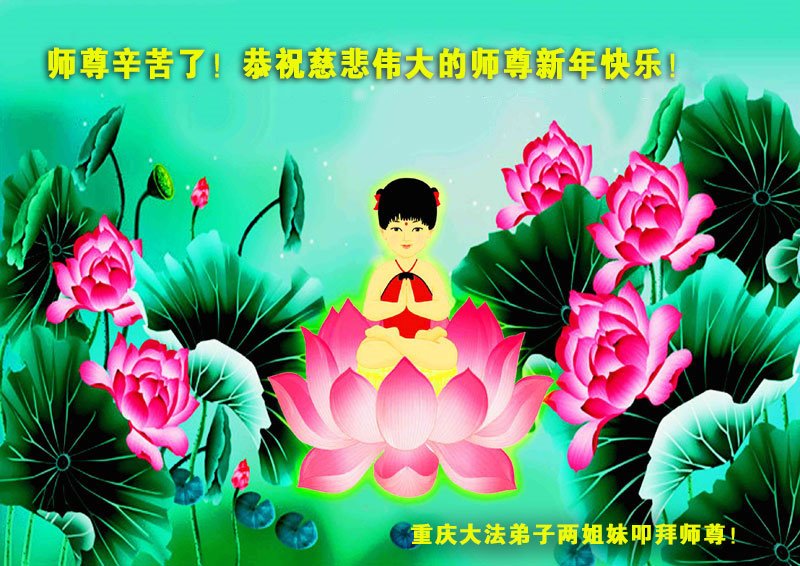 在新的一年里,谨记师尊教诲,整体配合好,学好法,以法为师,事事向内找,以强大的正念形成圆容不破的整体,努力认真做好三件事,修好自己,抓紧救人、多救人,完成我们的历史大任,兑现史前誓约,不辜负师尊对我们的慈悲救度,圆满随师还。弟子姐妹俩双手合十叩拜! 重庆市江北区大法弟子恭祝伟大慈悲的师尊新年好!