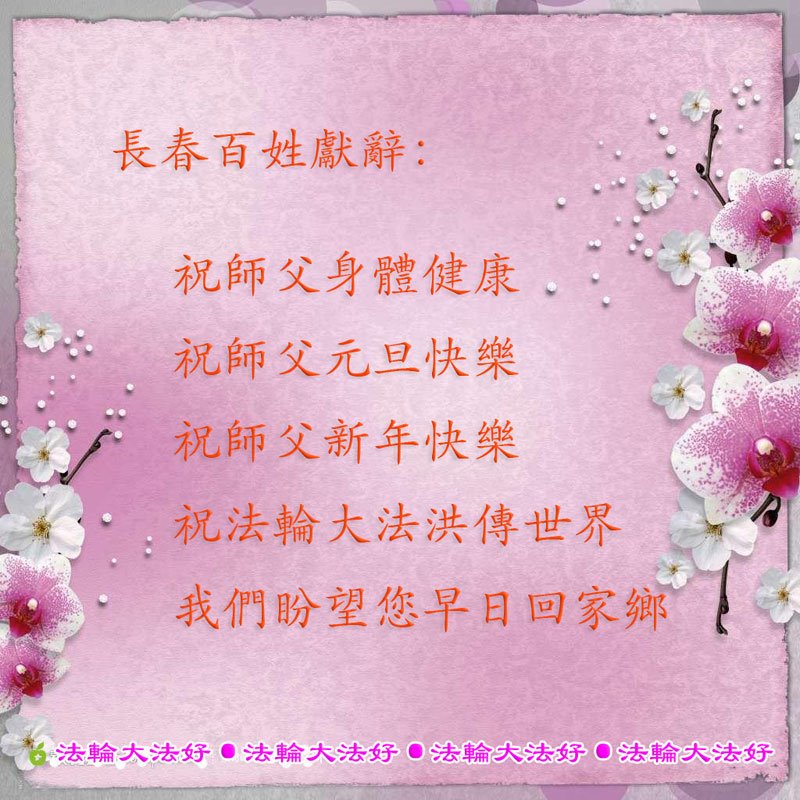 长春百姓献辞: 祝师父元旦快乐! 我们盼望您早日家乡! 吉林省长春大法弟子一家三口恭祝师父新年快乐!