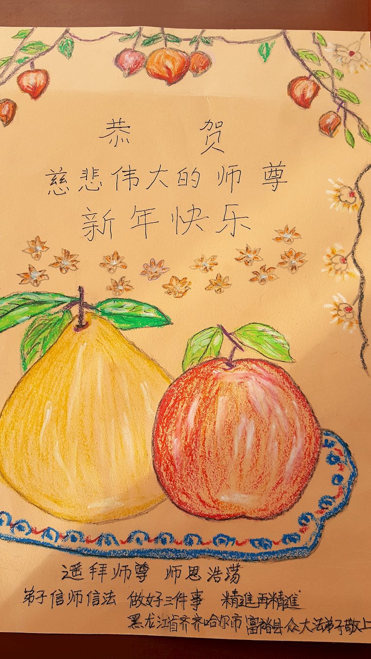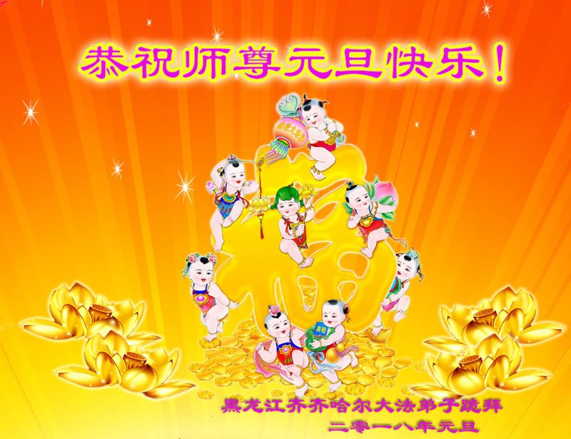 【明慧网二零一七年十二月二十九日】 黑龙江齐齐哈尔市富裕县众大法弟子恭祝慈悲伟大的师尊新年快乐!