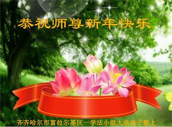 黑龙江省齐齐哈尔市富拉尔基区一学法小组大法弟子恭祝师尊新年快乐!