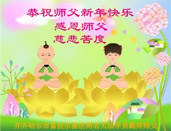 黑龙江省齐齐哈尔市富拉尔基区两位大法学员恭祝师父新年快乐!