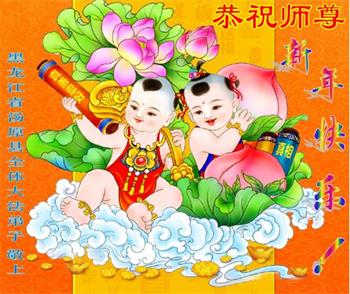 黑龙江省佳木斯一大法弟子全家恭祝慈悲伟大的师尊新年快乐!