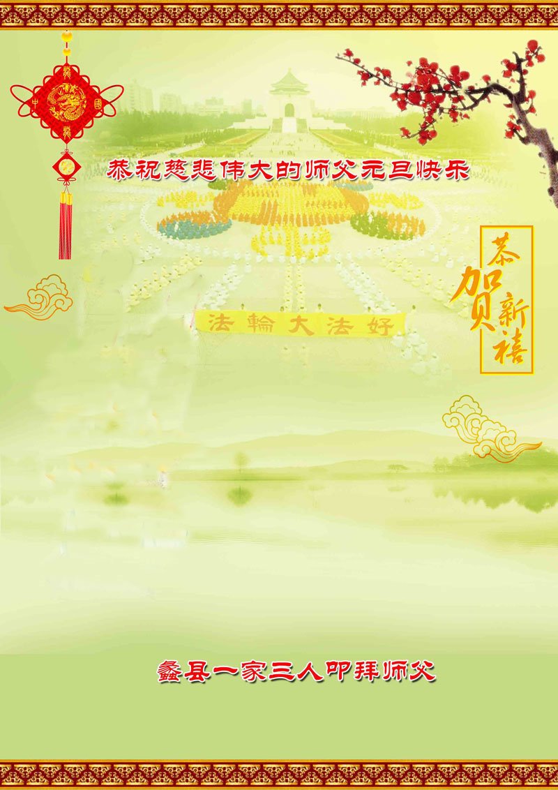 浩瀚洪恩师尊赐 众生得救喜今朝 沧海充毫无以颂 长河当卷不能歌 元旦渐近思师浓 心香燃着感恩泪 弟子叩拜恩师度 华夏神州沐洪福 河北保定市定州市大法弟子一家恭祝师尊新年快乐!