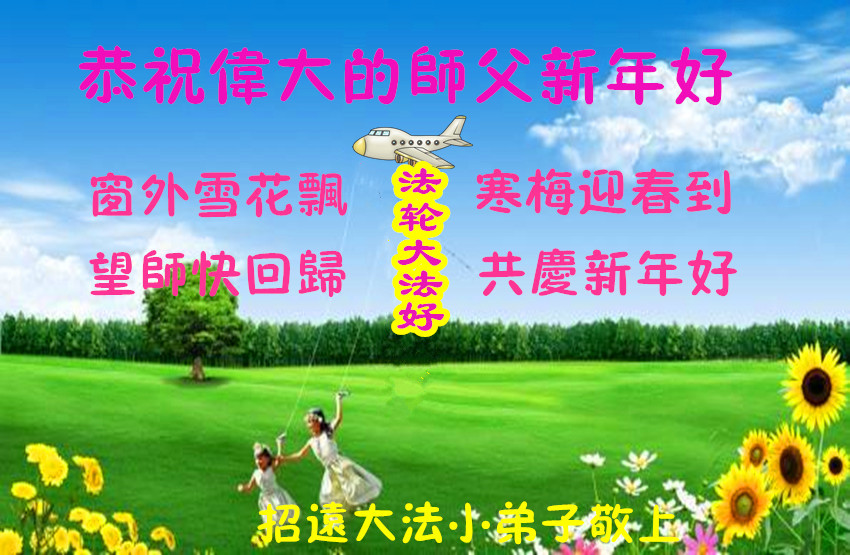 师父:您好,您辛苦了!感谢师父慈悲苦度! 黑龙江省佳木斯市富锦市全体大法小弟子恭祝师父新年好!