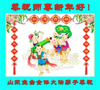 山东大法弟子恭祝慈悲伟大的师尊新年快乐!