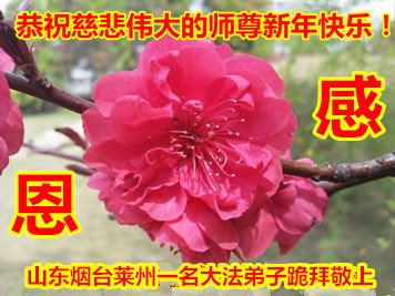 山东烟台莱州一名大法弟子恭祝慈悲伟大的师尊新年快乐! 山东烟台莱州一名大法弟子恭祝慈悲伟大的师尊新年快乐!