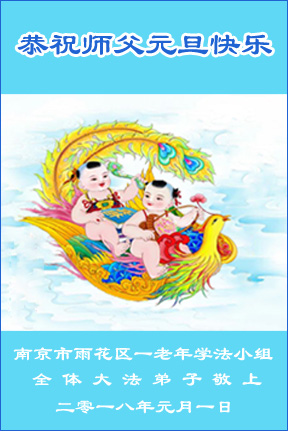江苏省南京雨花区一老年学法小组全体大法弟子恭祝师父元旦快乐!