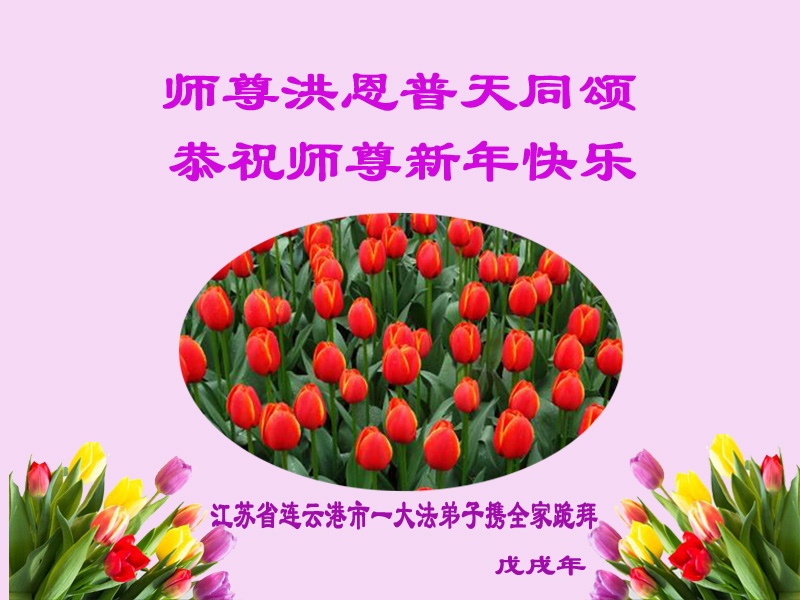 江苏省连云港市一大法弟子携全家恭祝慈悲伟大的师尊新年好!