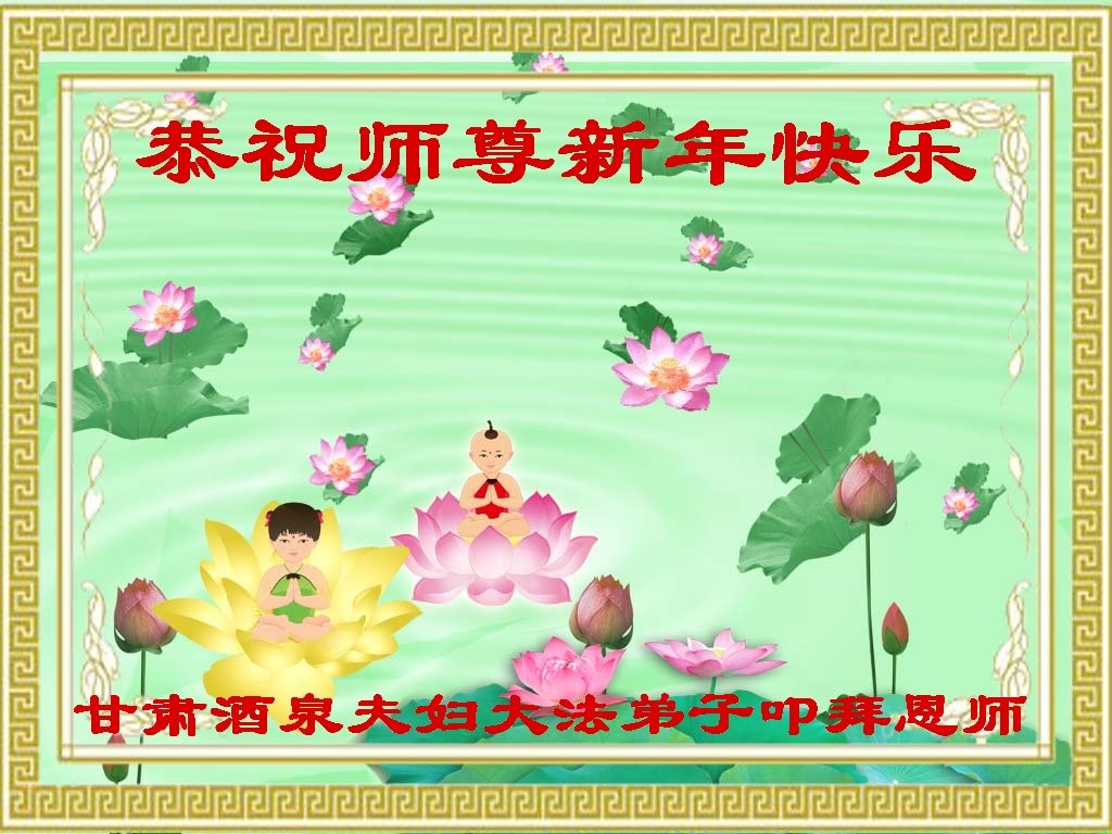 恭祝慈悲的师尊新年快乐! 甘肃酒泉市夫妻大法弟子跪拜 甘肃天水一老年大法弟子恭祝师尊新年快乐!