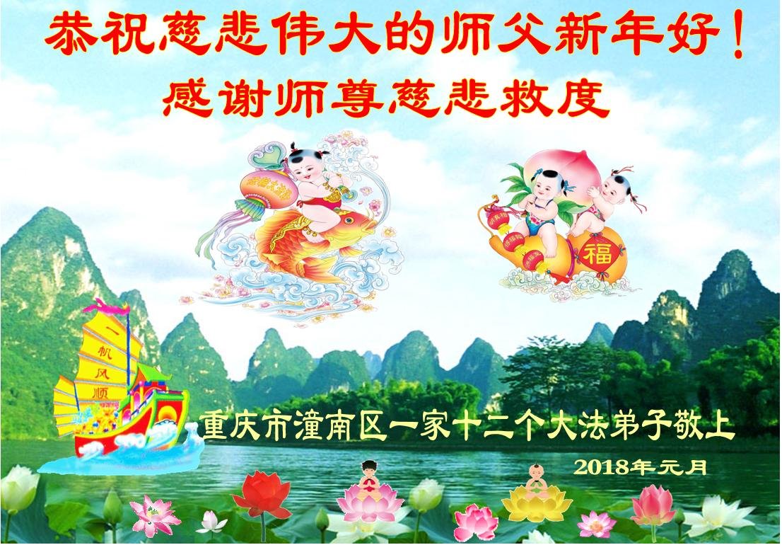 在2018年元旦到来之际,重庆市沙坪区一学法小组全体大法弟子向慈悲伟大的师尊问好:师尊您好!恭祝师尊元旦快乐! 学法小组全体大法弟子 敬拜 重庆市沙坪区新桥一大法弟子恭祝慈悲伟大的师尊元旦快乐!