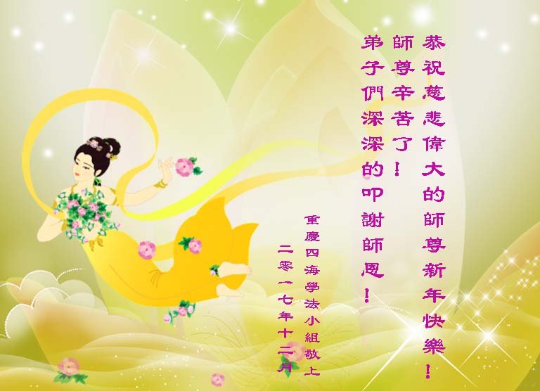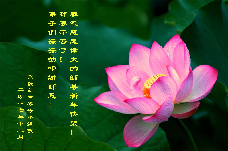 弟子们叩谢师尊慈悲救度! 重庆新上桥学法小组敬上 二零一七年十二月 重庆一学法小组恭祝慈悲伟大的师尊新年快乐!师尊辛苦了!