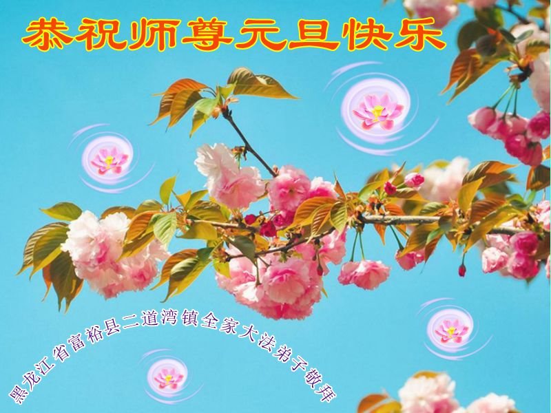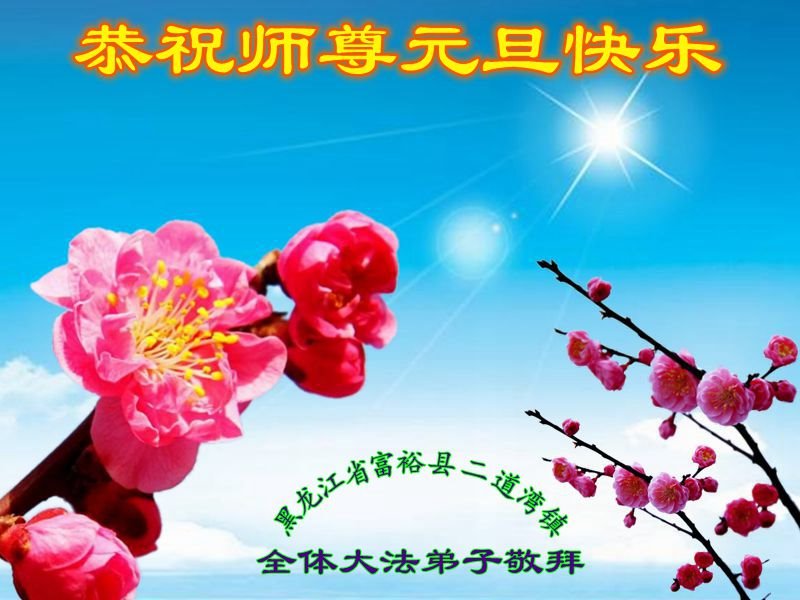 齐齐哈尔一名老年大法弟子恭祝师尊新年快乐! 黑龙江省齐齐哈尔市富裕县二道湾镇全体大法弟子恭祝师尊元旦快乐!