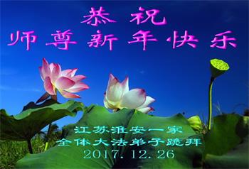 感谢师尊救度之恩! 江苏淮安一家四名大法弟子跪拜 江苏省连云港一家五名大法弟子恭祝师尊元旦快乐!
