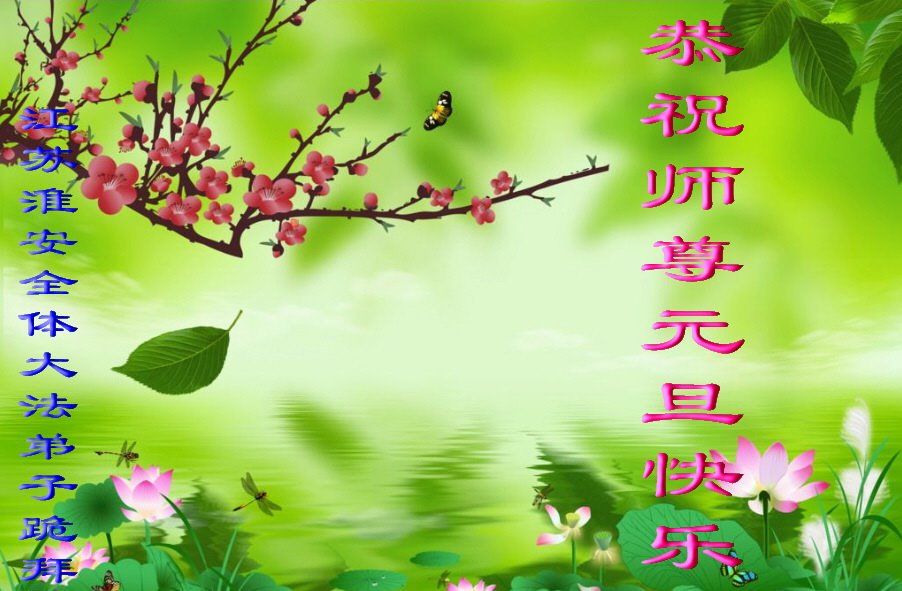感谢师尊救度之恩! 江苏淮安全体大法弟子跪拜 江苏淮安莲花等四名大法弟子恭祝师尊元旦快乐!
