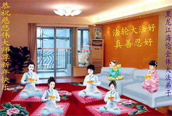 黑龙江省七台河一学法小组全体大法弟子恭祝师父新年快乐!