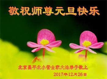 【明慧网二零一七年十二月三十日】 北京朝阳区两家庭大法弟子及家人恭祝慈悲伟大的师尊元旦快乐!
