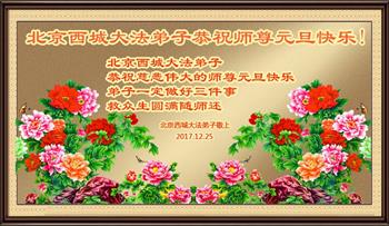北京大法弟子恭祝师尊新年快乐! 北京市海淀区大法弟子向慈悲伟大的师尊恭祝元旦快乐!