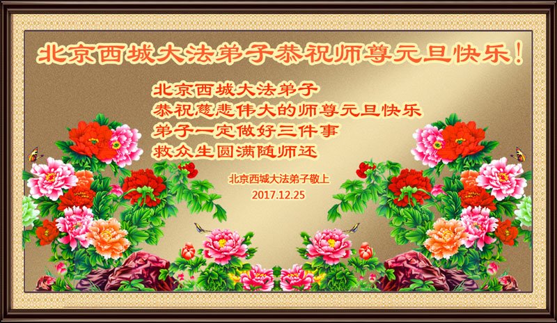 北京西城区阜成门大法弟子恭祝慈悲伟大的师尊元旦快乐!