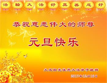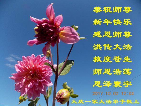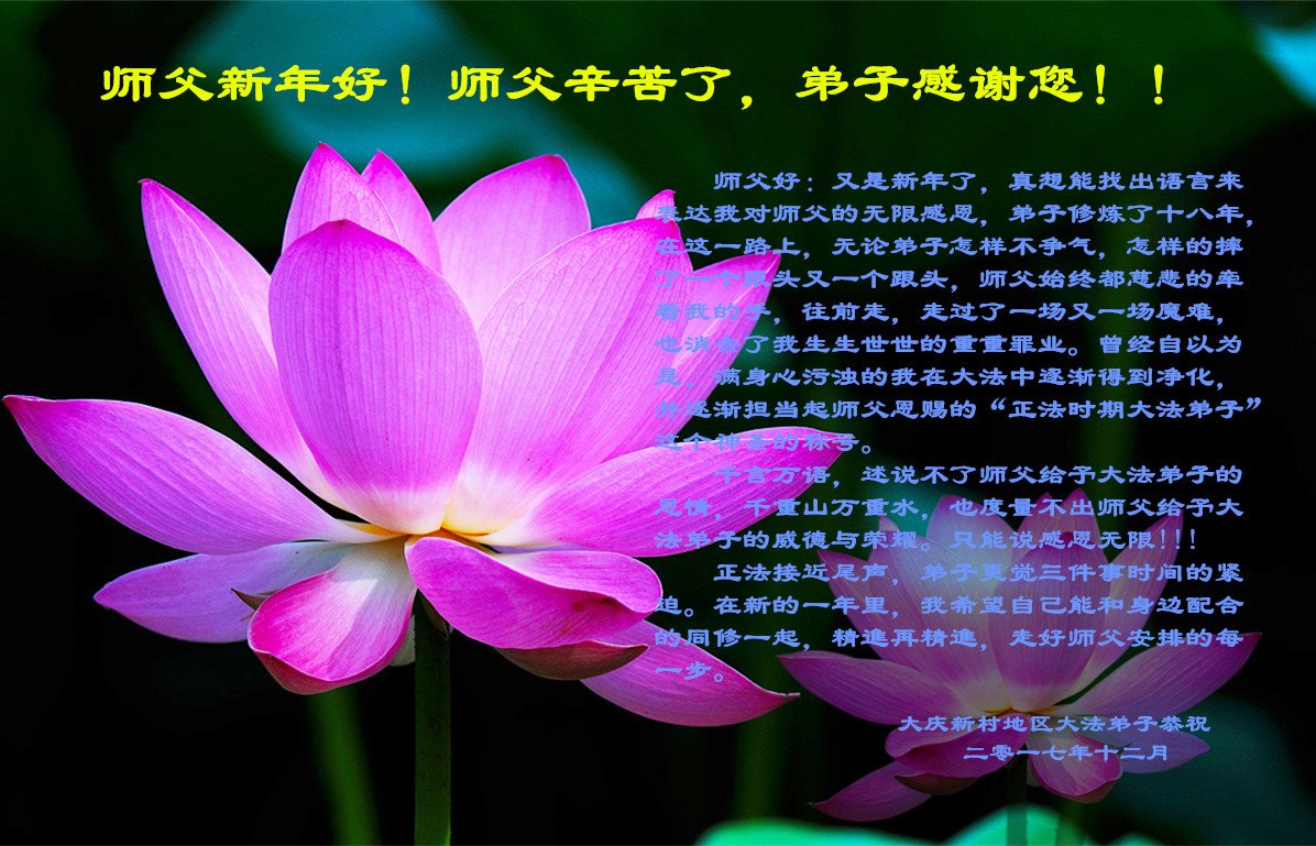 【明慧网二零一七年十二月三十日】 黑龙江大庆一家大法弟子恭祝慈悲伟大的师尊新年好!新年快乐!