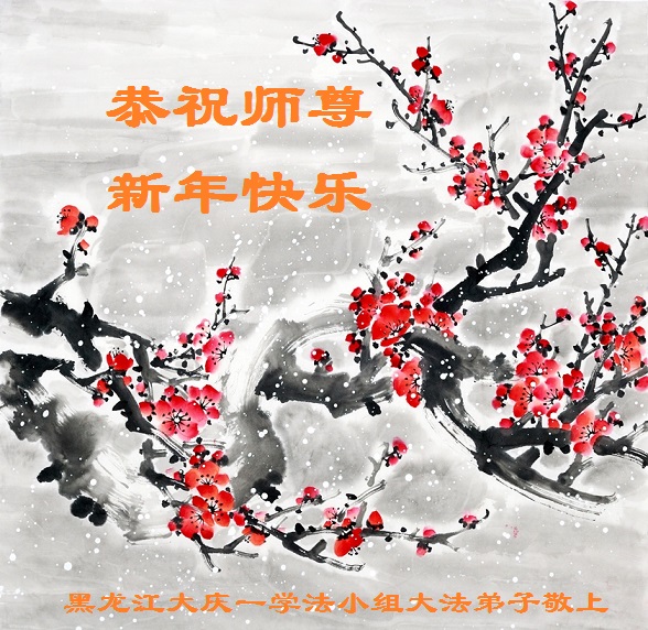 新年气象新 梅花傲雪俏 弟子共祝愿 师尊新年好 大法慈悲度 众生感恩笑 弟子再精進 修心向内找 做好三件事 救人要做到 誓约要兑现 心愿师尊笑