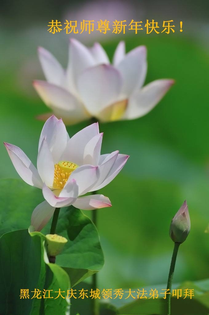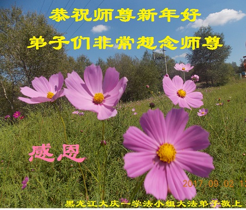 师父新年好!师父辛苦了,弟子感谢您! 师父好:又是新年了,真想能找出语言来表达我对师父的无限感恩,弟子修炼了十八年,在这一路上,无论弟子怎样不争气,怎样的摔了一个跟头又一个跟头,师父始终都慈悲的牵着我的手,往前走,走过了一场又一场魔难,也消去了我生生世世的重重罪业。曾经自以为是、满身心污浊的我在大法中逐渐得到净化,并逐渐担当起师父恩赐的“正法时期大法弟子”这个神圣的称号。 千言万语,述说不了师父给予大法弟子的恩情,千重山万重水,也度量不出师父给予大法弟子的威德与荣耀。只能说感恩无限! 正法接近尾声,弟子更觉三件事时间的紧迫。在新的一年里,我希望自己能和身边配合的同修一起,精進再精進,走好师父安排的每一步。 大庆新村地区大法弟子敬致 黑龙江省大庆市龙凤区大法弟子恭祝师尊新年快乐!