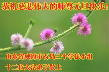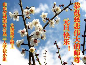 山东省威海市石岛三个学法小组十二位大法弟子恭祝慈悲伟大的师尊元旦快乐!