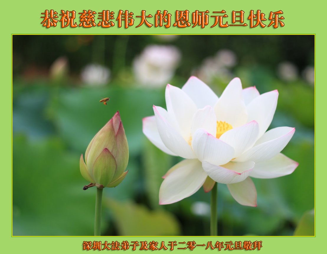 广东省深圳大法弟子及家人恭祝慈悲伟大的恩师元旦快乐!