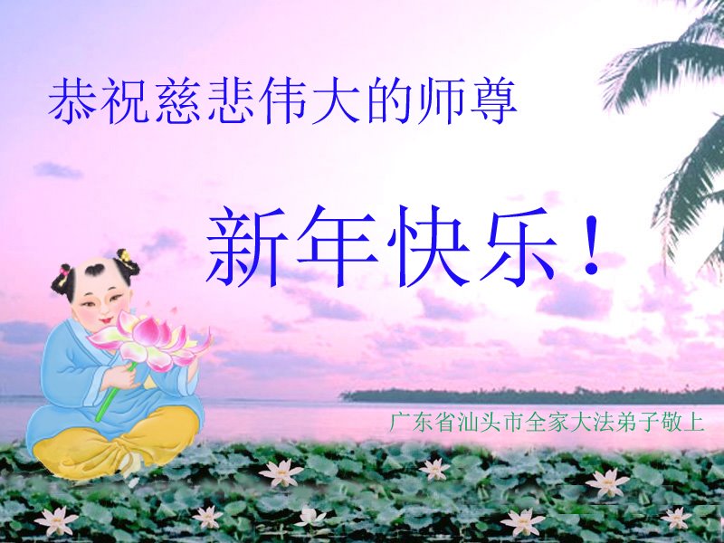 广东省揭阳市普宁一家子恭祝师尊新年快乐! 广东省揭阳市两姐妹、七十多岁的老年大法弟子恭祝师尊新年快乐! 广东省梅州市大埔县全体大法弟子恭祝慈悲伟大的师父新年快乐!
