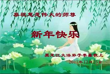 元旦谢师恩 瑞雪飘飞万象新,亿万法徒谢师恩。 同化大法真善忍,敬读天书《转法轮》。 师恩浩荡救苍宇,佛法无边度世人。 弟子精進遵师教,践约正行回天门。 大陆黑龙江伊春一大法弟子叩拜恩师!恭祝师尊元旦快乐! 二零一七年十二月二十三日 黑龙江省迎春大法弟子恭祝师尊元旦快乐!