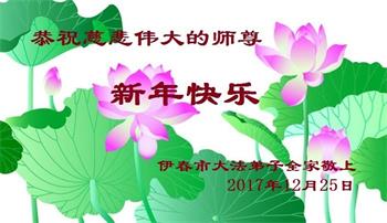 黑龙江省伊春地区大法弟子圣莲全家恭祝慈悲伟大的师尊新年快乐!