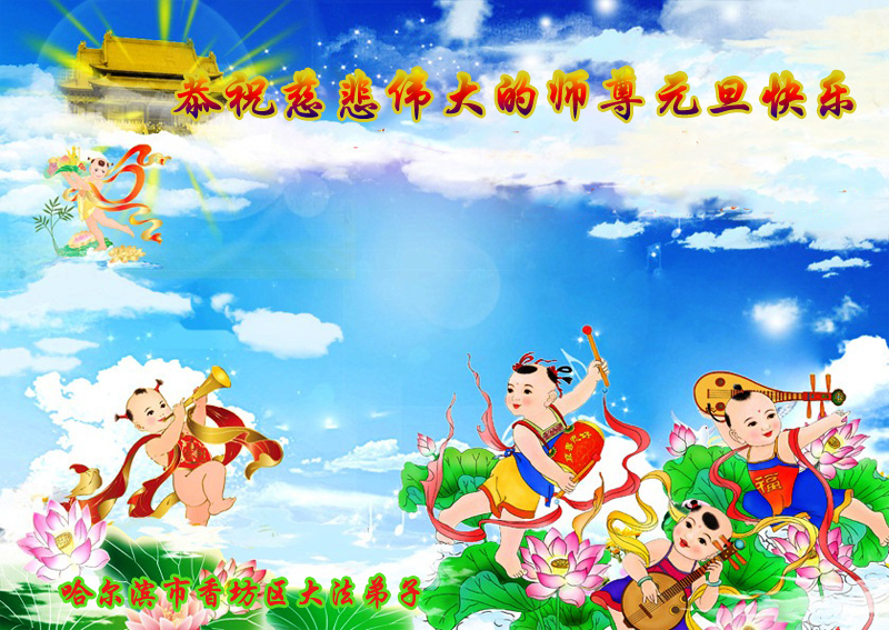 黑龙江哈尔滨市香坊区大法弟子恭祝慈悲伟大的师尊元旦快乐!