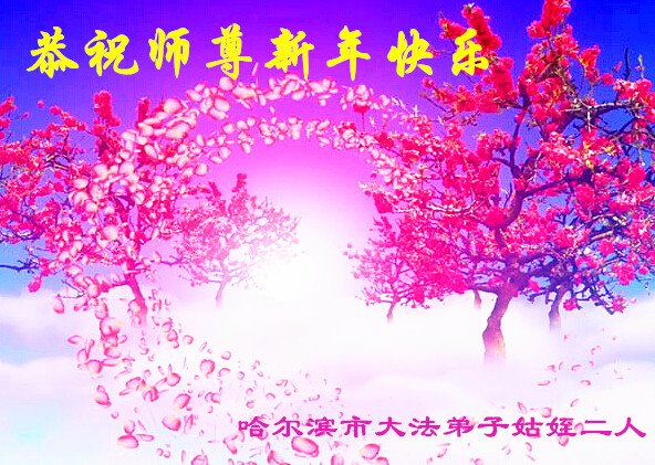 【明慧网二零一七年十二月三十日】 黑龙江省哈尔滨市大法弟子姑侄二人恭祝慈悲伟大的师尊新年快乐!