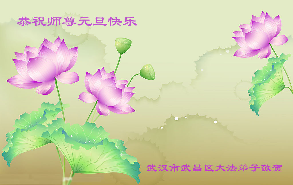 在新的一年里,路再艰难,无论遇到多大的魔难,弟子决不转向,坚修大法到底。谢谢师父慈悲保护。弟子敬祝师父元旦快乐! 武汉市大法弟子敬上 湖北武汉一学法组全体成员恭祝师尊圣诞快乐!元旦快乐!