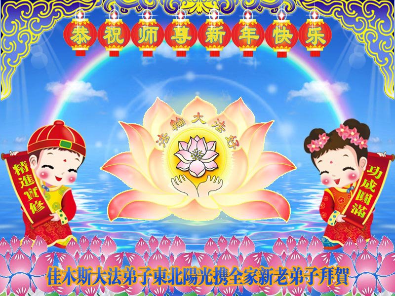 黑龙江佳木斯大法弟子东北阳光携全家新老弟子叩拜师尊新年好!