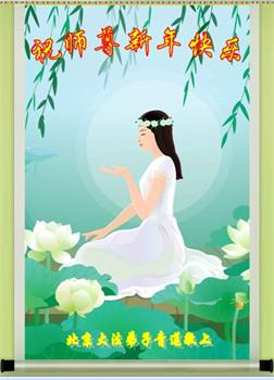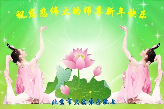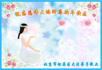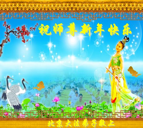 师尊您好,您辛苦了! 谢谢您为了成就弟子所付出的一切,弟子将谨记师尊的教诲,多学法、学好法,因为只有在学好法的基础上才能做好三件事,完成大法弟子肩负的救度众生的历史使命,才能真正做到让师尊多一份欣慰,少一份操劳。我要踏踏实实走好修炼道路上的每一步,圆满随师还。 叩拜师尊! 北京市大法弟子敬上 北京市怀柔区大法弟子祝慈悲伟大的师父新年快乐!