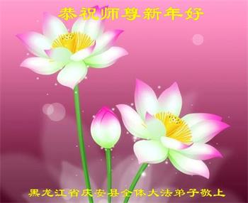 师父您好!师父您辛苦了! 黑龙江省绥化市庆安县全体大法弟子恭祝慈悲伟大的师尊新年快乐!