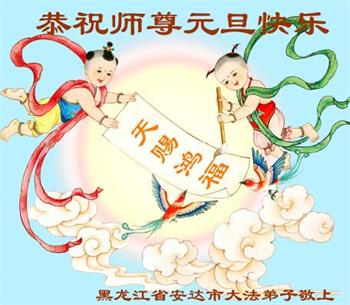 恭祝师尊元旦快乐! 在新的一年里,弟子一定坚信师尊,坚信大法,修去自身的党文化因素,兑现誓约,多救人,助师正法,圆满随师还。 黑龙江省安达市大法弟子敬上 黑龙江省绥化市安达市大法弟子恭祝师尊元旦快乐!