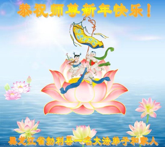 师父您好!师父您辛苦了! 黑龙江省七台河市勃利县一名大法弟子和家人恭祝慈悲伟大的师尊新年快乐!